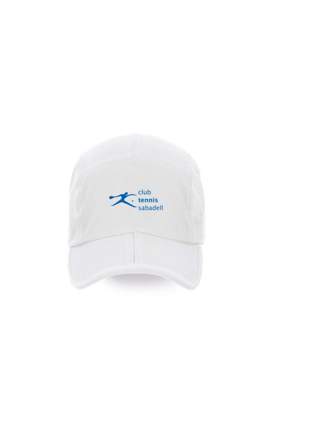 Gorra plegable técnica transpirable confeccionada en poliester. Cierre ajustable con velcro . Incluye el marcaje a color 10x5cm.