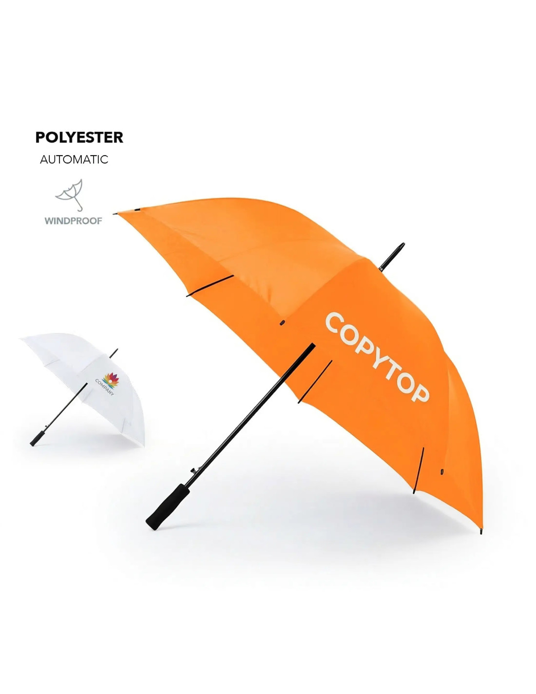 Los paraguas sponsorizados con publicidad baratos son un artículo de merchandising bastante solicitado y práctico. Son de poliester en tamaño XL  destaca por su diseño sobrio y elegante al mismo tiempo deportivo, el paraguas de poliester está disponible en varios colores: Azul, naranja, fucsia, amarillo, rojo, blanco, negro, verde entre otros. También llama la atención su práctica apertura automática y su mango acolchado que le aporta mayor comodidad.